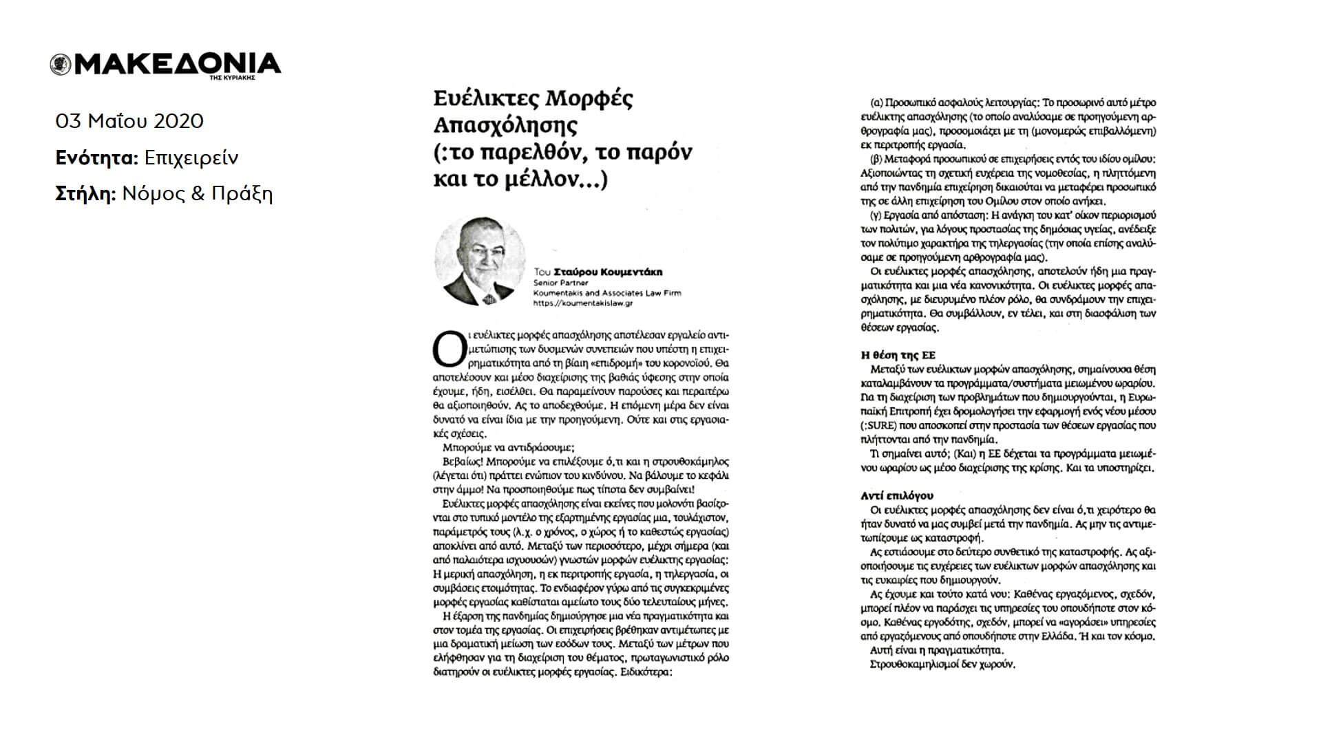 Η αξιοποίηση  των ευέλικτων μορφών απασχόλησης έχει, ήδη, δημιουργήσει μια νέα κανονικότητα. Μια κανονικότητα που δεν αναμένεται να παρέλθει με το (μη ορατό ακόμα) πέρας της πανδημίας.