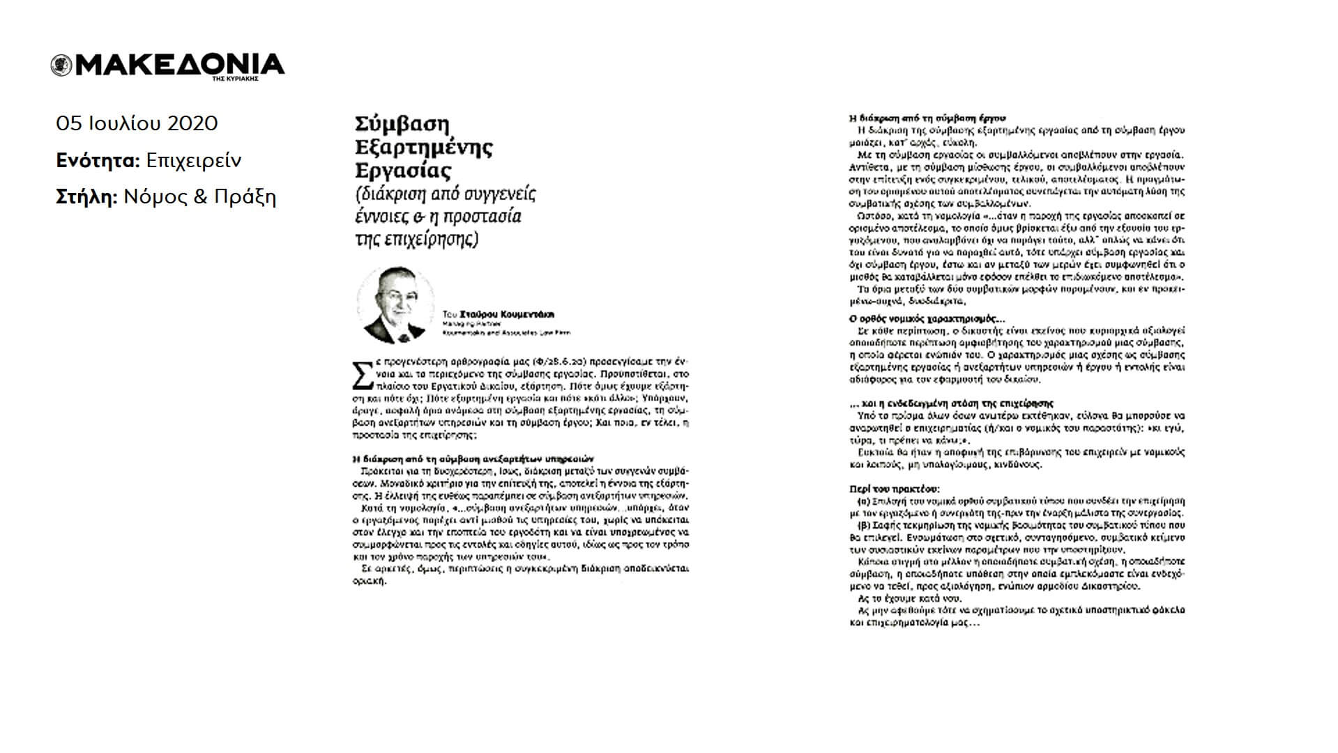 Υ.Γ. Συνοπτική έκδοση του άρθρου δημοσιεύτηκε στην Εφημερίδα ΜΑΚΕΔΟΝΙΑ, στις 5 Ιουλίου 2020.