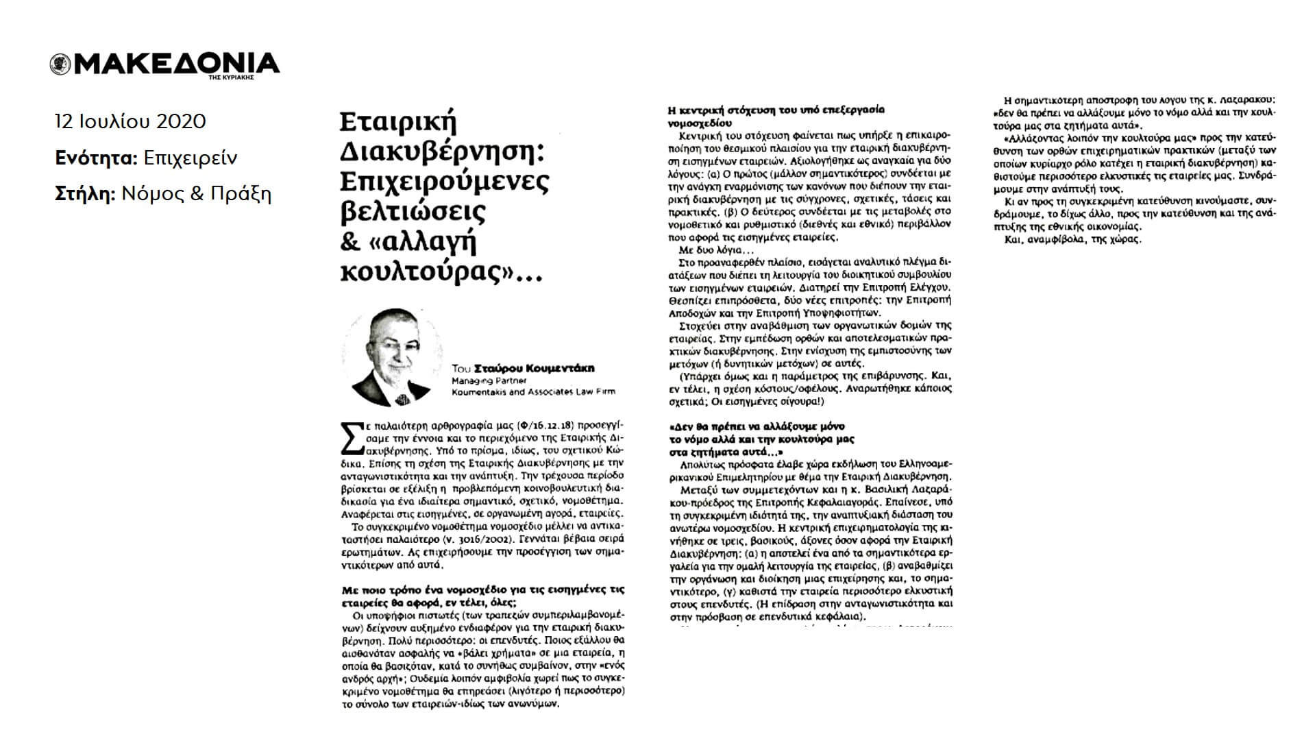 Δεν είναι παράδοξο που το νομοσχέδιο αναφορικά με την Εταιρική Διακυβέρνηση δημιούργησε αποκλίνουσες απόψεις και προσέφερε πεδίο ανάπτυξης ενός εποικοδομητικού διαλόγου.