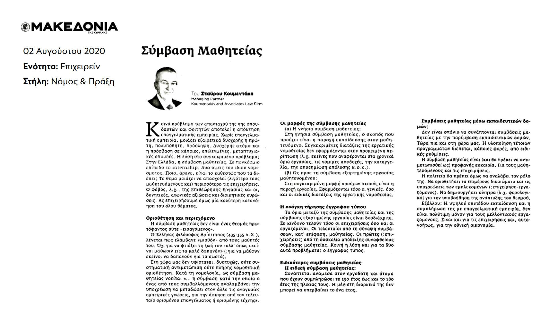 Η σύμβαση μαθητείας είναι (και θα πρέπει να αντιμετωπισθεί ως) προφανής ευκαιρία.