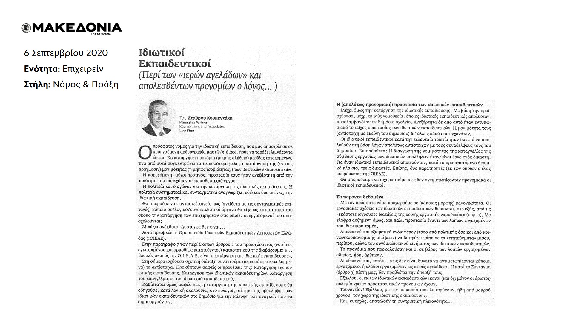 Υ.Γ. Συνοπτική έκδοση του άρθρου δημοσιεύτηκε στην Εφημερίδα ΜΑΚΕΔΟΝΙΑ, στις 6 Σεπτεμβρίου 2020.