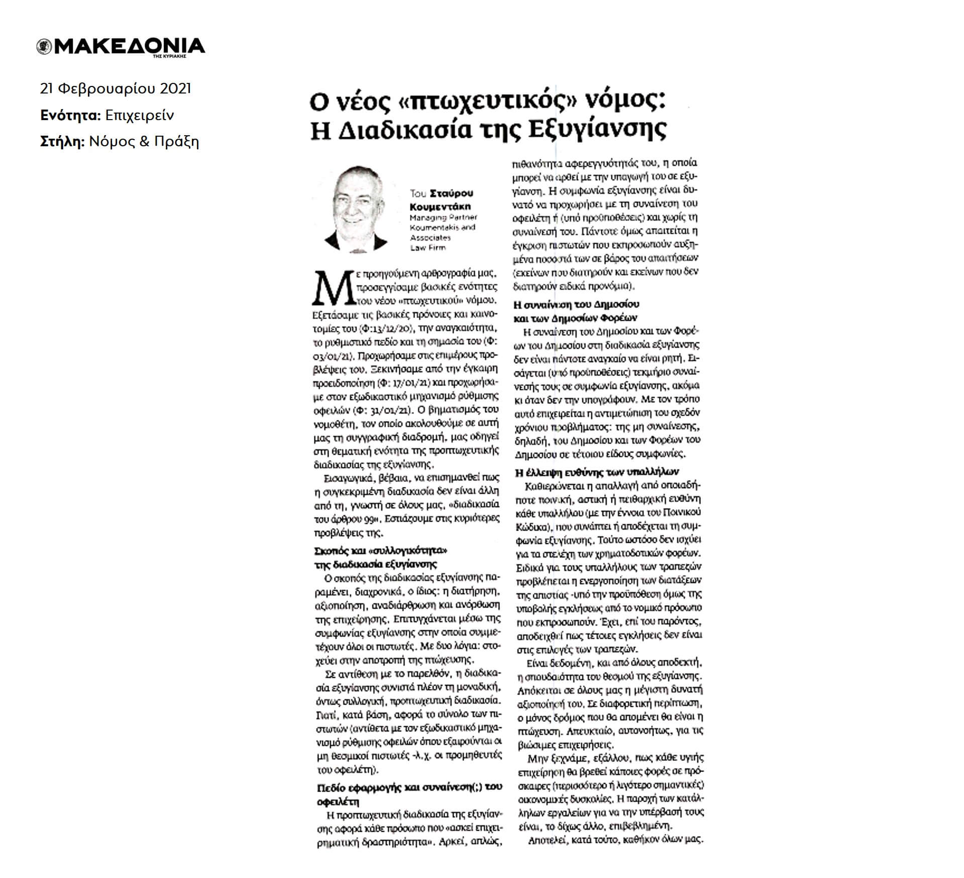 Υ.Γ. Συνοπτική έκδοση του άρθρου δημοσιεύτηκε στην Εφημερίδα ΜΑΚΕΔΟΝΙΑ, στις 21 Φεβρουαρίου 2021.