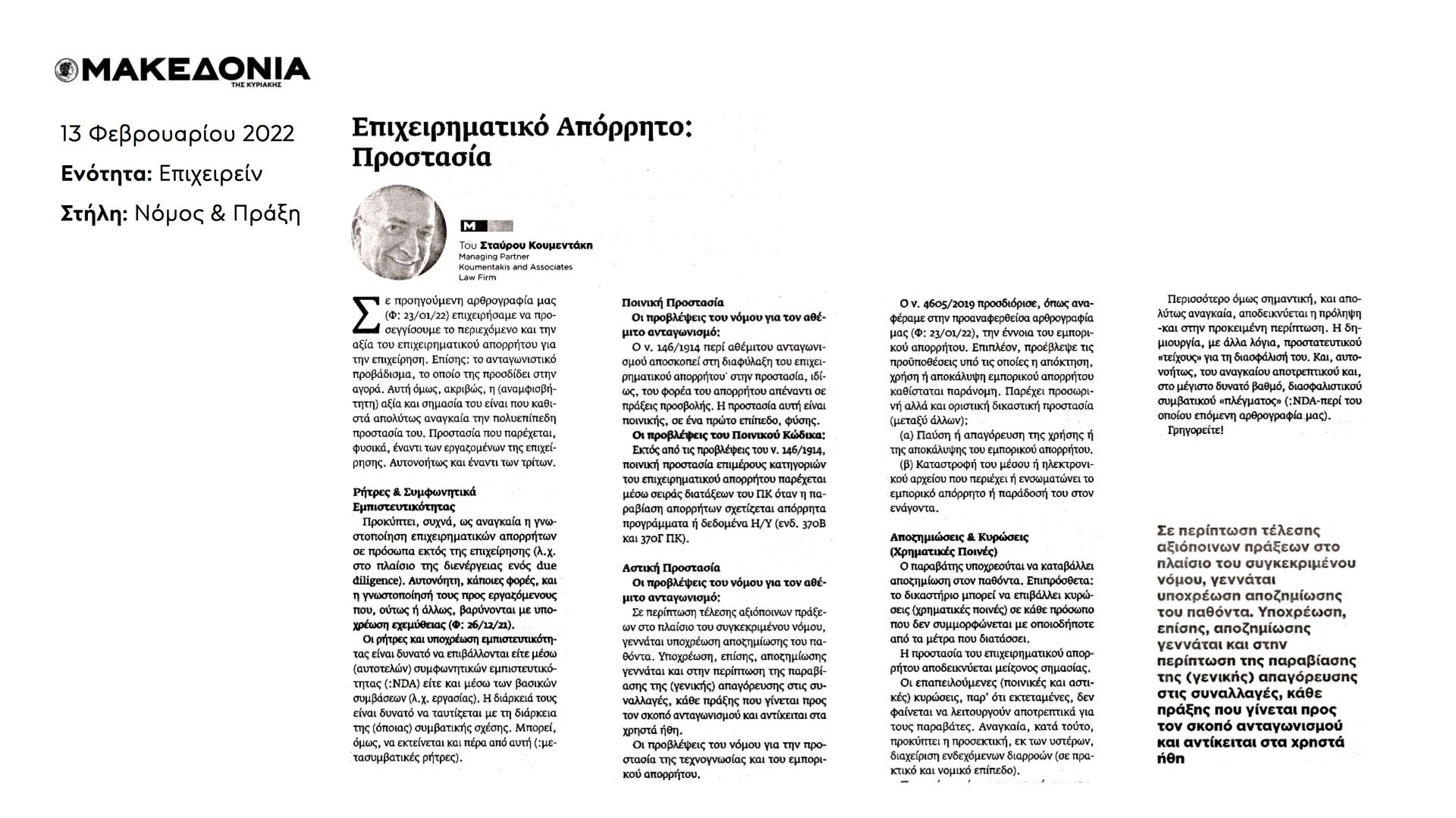 Υ.Γ. Συνοπτική έκδοση του άρθρου δημοσιεύτηκε στην Εφημερίδα ΜΑΚΕΔΟΝΙΑ, στις 13 Φεβρουαρίου 2022.