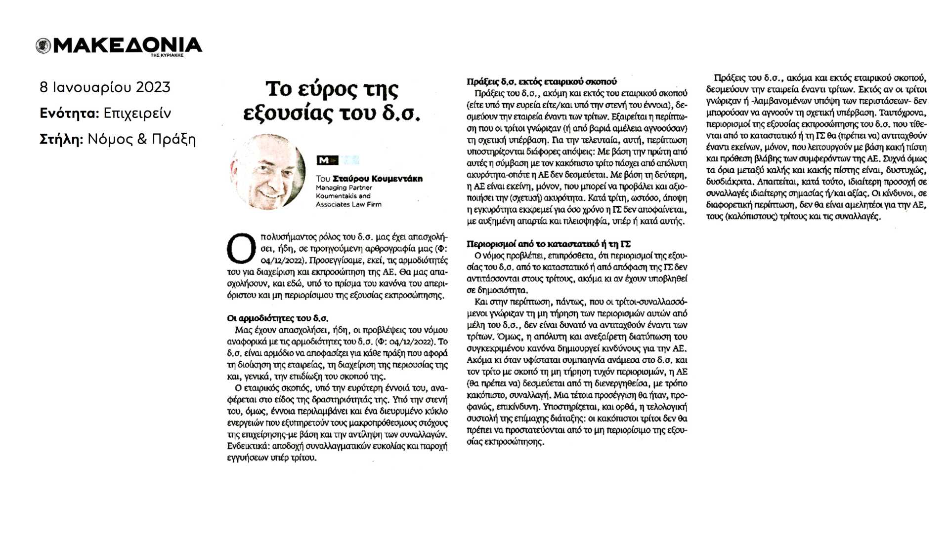 Το Εύρος Της Εξουσίας Του ΔΣ