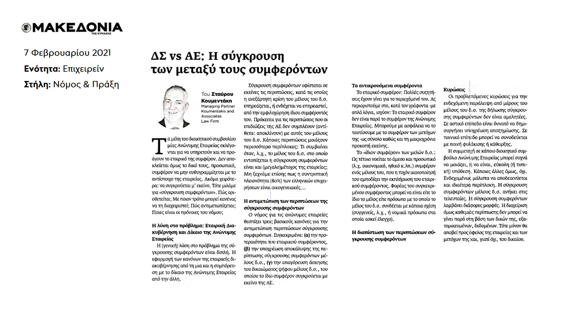 Υ.Γ. Συνοπτική έκδοση του άρθρου δημοσιεύτηκε στην Εφημερίδα ΜΑΚΕΔΟΝΙΑ, στις 7 Φεβρουαρίου 2021.