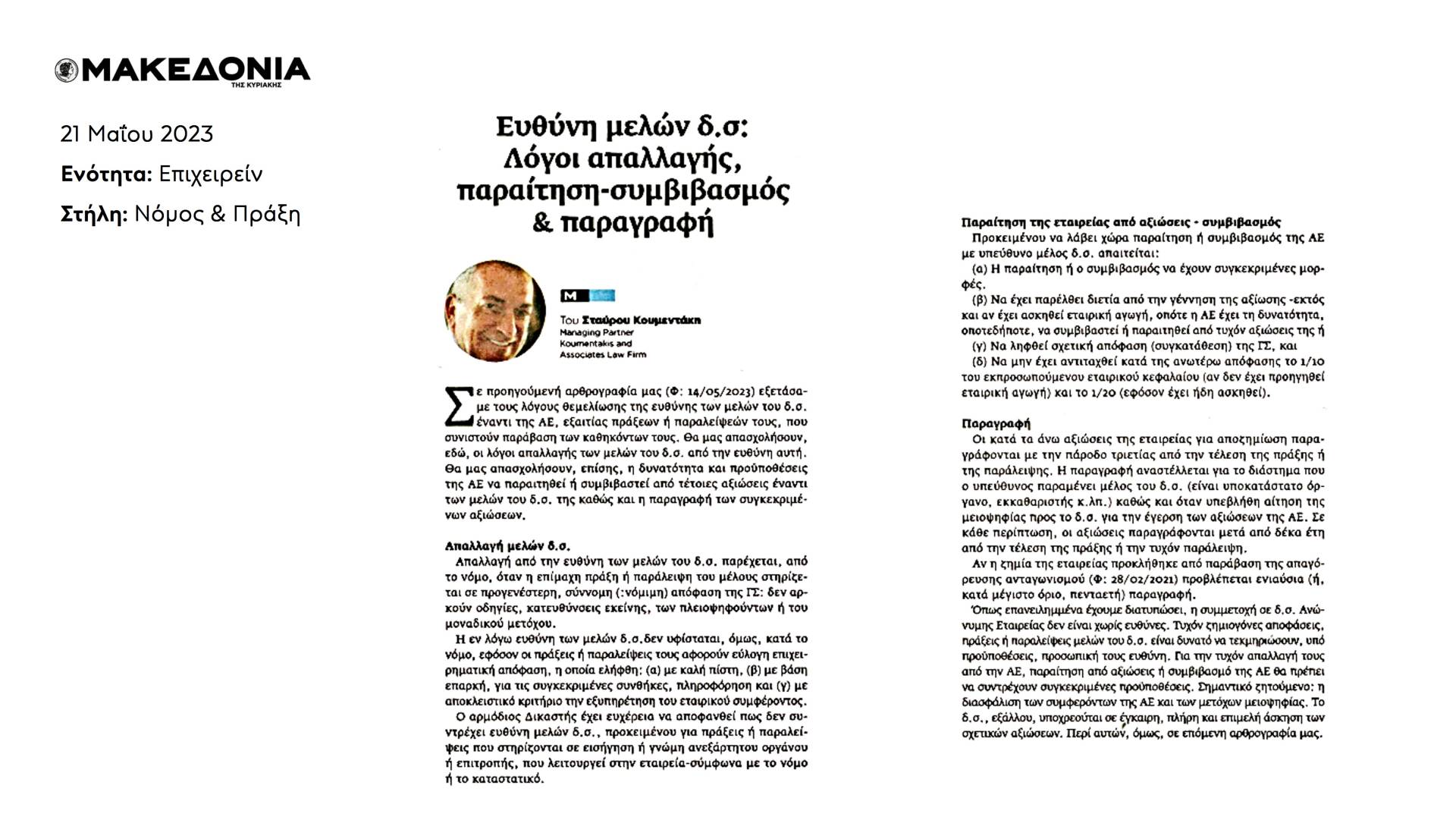 Υ.Γ. Συνοπτική έκδοση του άρθρου δημοσιεύτηκε στην Εφημερίδα ΜΑΚΕΔΟΝΙΑ, στις 21 Μαΐου 2023.
