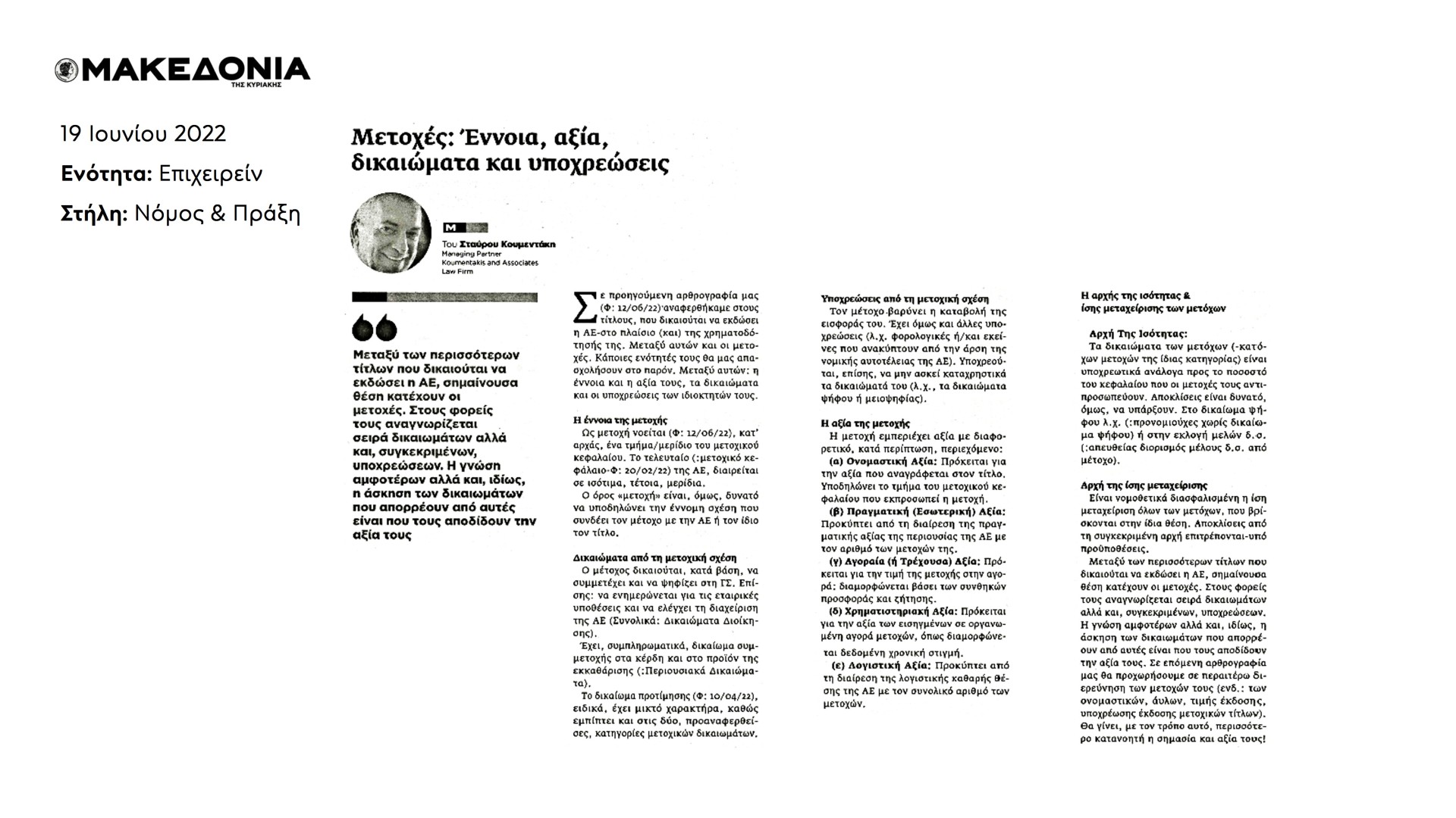Υ.Γ. Συνοπτική έκδοση του άρθρου δημοσιεύτηκε στην Εφημερίδα ΜΑΚΕΔΟΝΙΑ, στις 19 Ιουνίου 2022.
