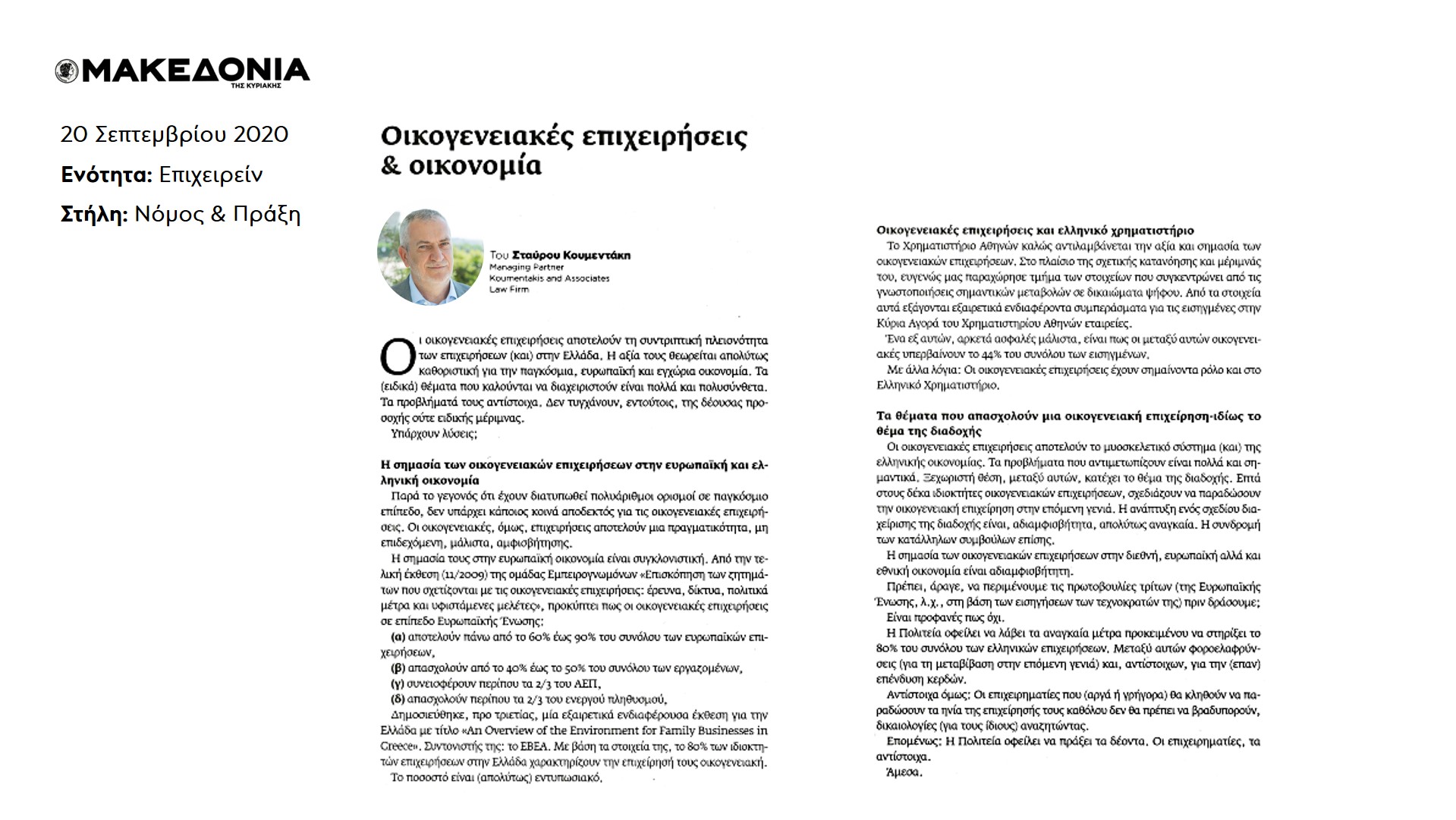 Υ.Γ. Συνοπτική έκδοση του άρθρου δημοσιεύτηκε στην Εφημερίδα ΜΑΚΕΔΟΝΙΑ, στις 20 Σεπτεμβρίου 2020.