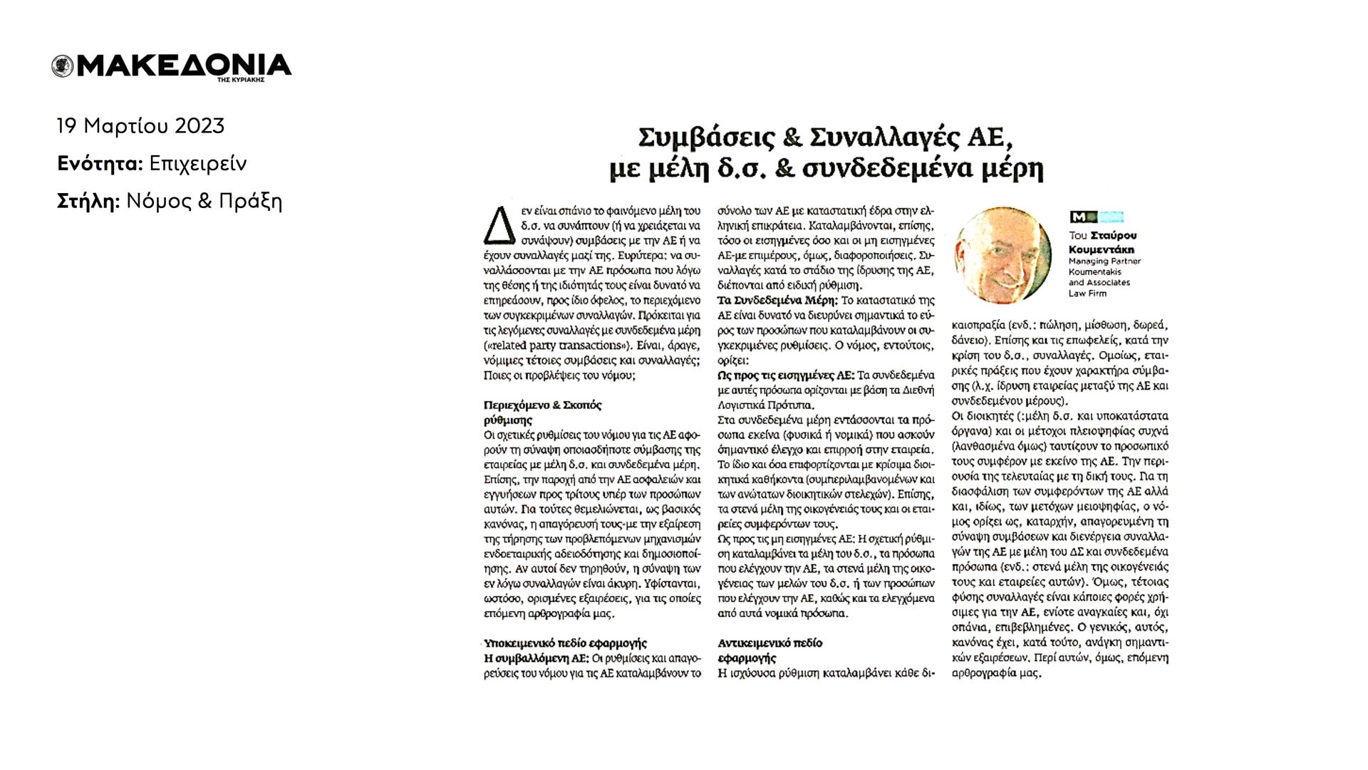 Υ.Γ. Συνοπτική έκδοση του άρθρου δημοσιεύτηκε στην Εφημερίδα ΜΑΚΕΔΟΝΙΑ, στις 19 Μαρτίου 2023.