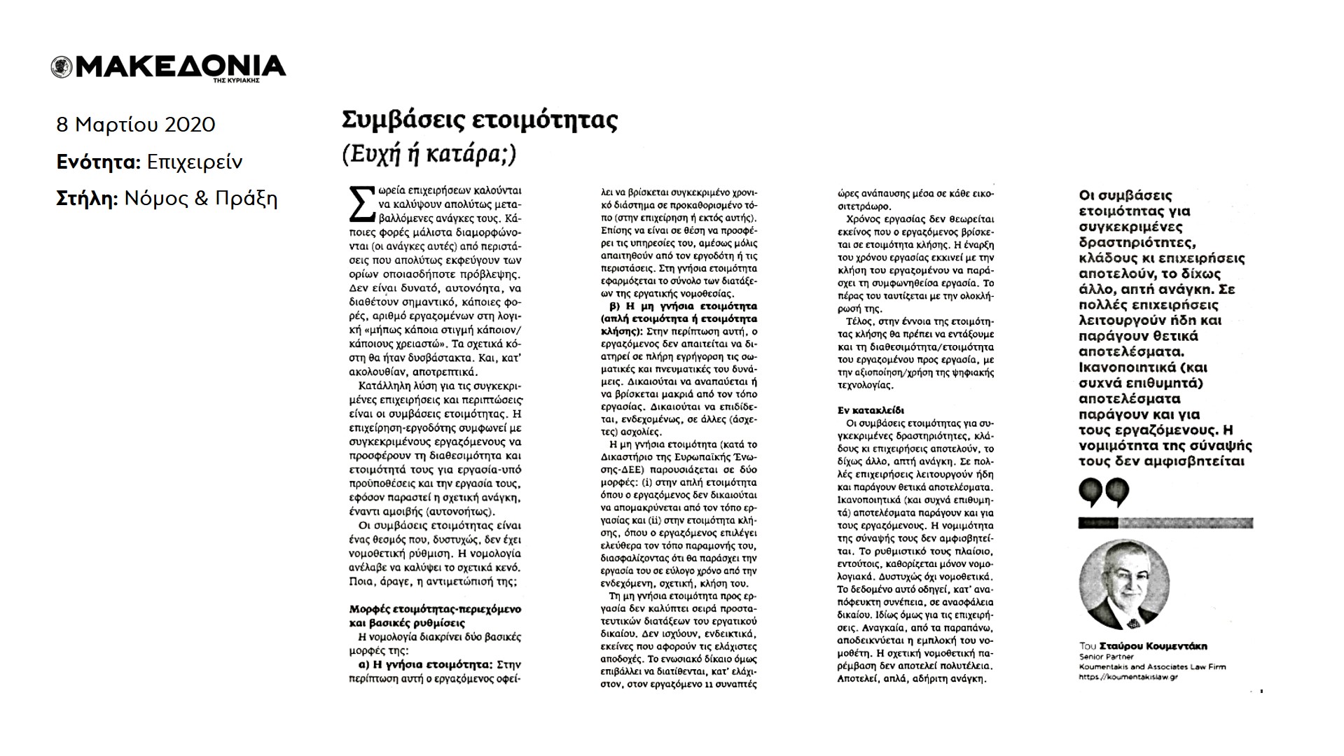Υ.Γ. Συνοπτική έκδοση του άρθρου δημοσιεύτηκε στην Εφημερίδα ΜΑΚΕΔΟΝΙΑ, στις 8 Μαρτίου 2020.