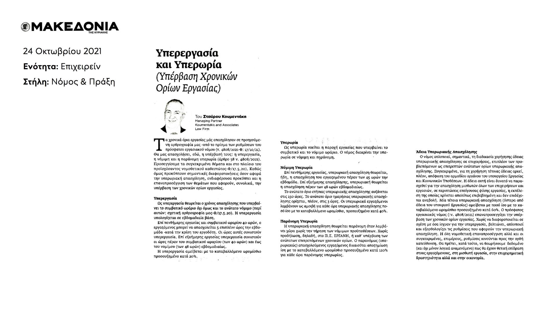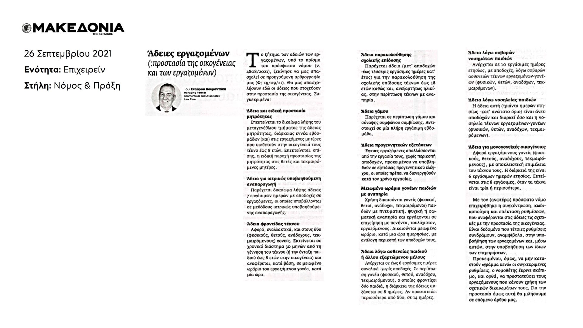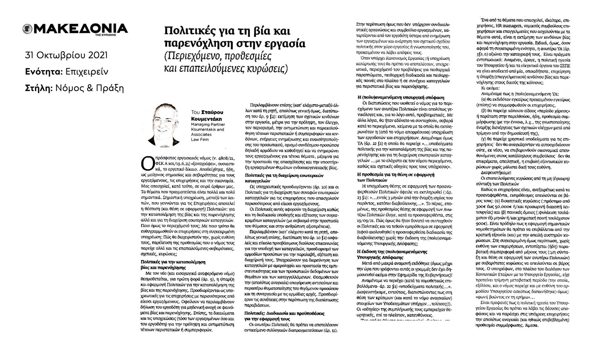 Υ.Γ. Συνοπτική έκδοση του άρθρου δημοσιεύτηκε στην Εφημερίδα ΜΑΚΕΔΟΝΙΑ, στις 7 Νοεμβρίου 2021.